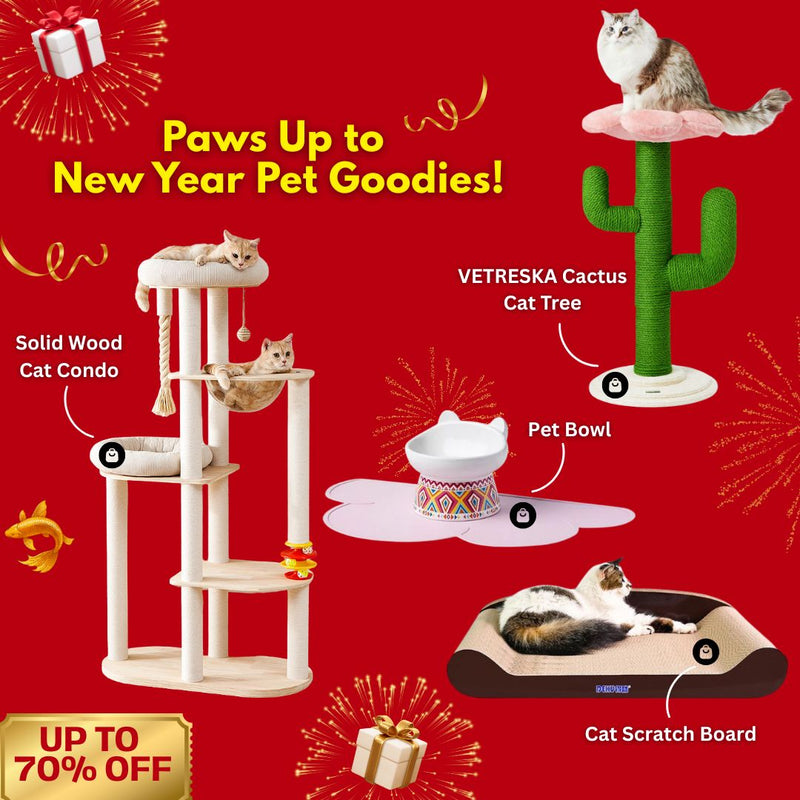 132cm Forest Castle Solid Wood Cat Climbing Tree House & Scratching Post