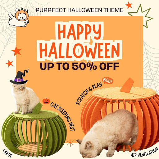 View full details[Halloween Special] Orange Pumpkin Nest Cat House – Semi-Closed Felt Cat Bed for Cozy Comfort